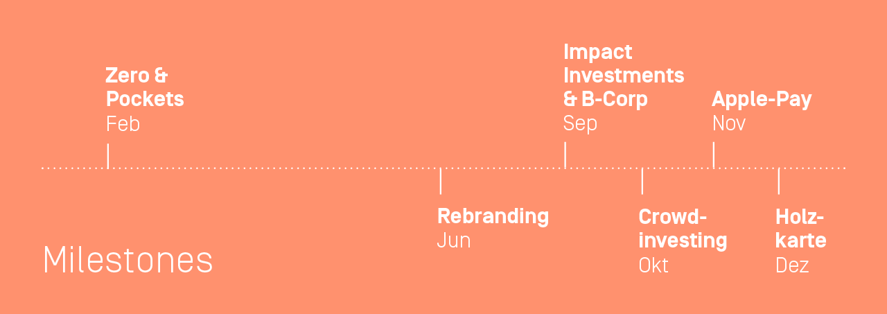 Starten wir bei unserem Rückblick erstmal mit den Entwicklungen bei den Konten und in der App. Gleich zu Anfang des Jahres ging es da nämlich richtig gut los. Denn im Februar sind wir mit Zero live gegangen. Dem ersten Konto weltweit, das den durchschnittlichen CO₂-Abdruck einer Person in Deutschland kompensiert. Also rund elf Tonnen.