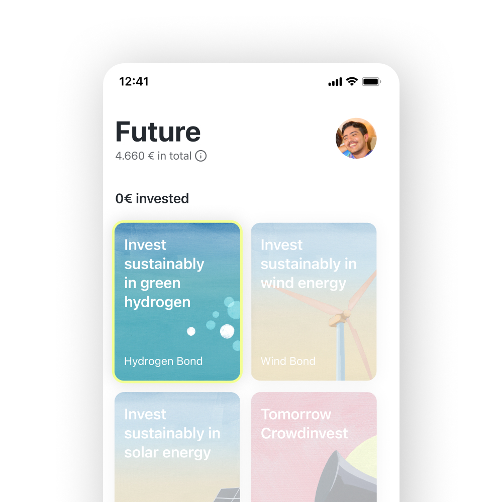 In the Future tab of the Tomorrow app, you now have the opportunity to invest directly in a green hydrogen bond. As a Tomorrow customer, you can find more information directly in the app.