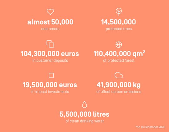 And the numbers speak for themselves: around 30,000 new customers, over 70 million euros more in customer deposits, almost 77,000,000 m² more protected forest and over 30,000,000 kg more of offset carbon.